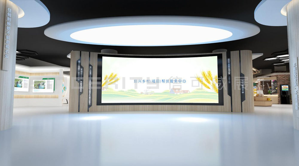 深圳(福田)振興鄉(xiāng)村消費(fèi)扶貧展示廳面積1300平米,包括“大國戰(zhàn)略”、“圳興有我”、“圳興有禮”、“圳興發(fā)布”、“圳興滋味”五大功能區(qū),整個(gè)展示館本著“節(jié)儉、樸實(shí)、不奢華”原則,通過圖文展版、實(shí)物展陳、模型展示、場景還原等多種形式,綜合運(yùn)用聲光電技術(shù),搭建“鄉(xiāng)村振興+創(chuàng)新性協(xié)作服務(wù)平臺(tái)。